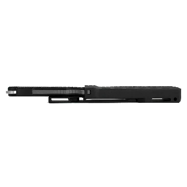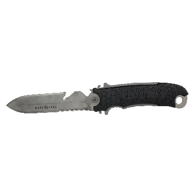 –Patented Locking mechanism securely locks knife in sheath, but releases easily with a squeeze of the handle (Patent # 5,926,959)