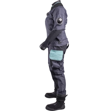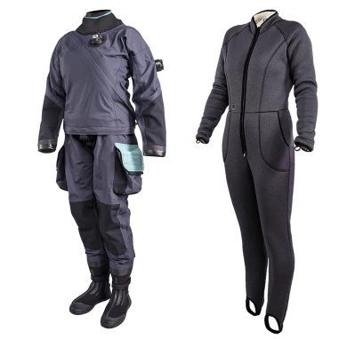 - Comfortable and flexible neoprene boots, latex seals at neck and wrists, Apeks inlet and outlet valves.