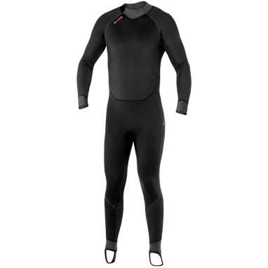 This rear zip suit provides full body protection from the elements. Includes foot stirrups for easy donning under a wetsuit or to keep the suit in place when worn on its own in warm waters or topside activities.