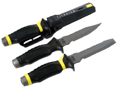 The non-corroding solid titanium blade combined with straight and serrated cutting edges on the 5 inch blade and a quick release sheath make this the best all around diver’s knife. The ultimate in salt water corrosion resistance, a keen edge, incredible strength and a design unique for diving make this knife the best all around diver’s knife.