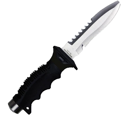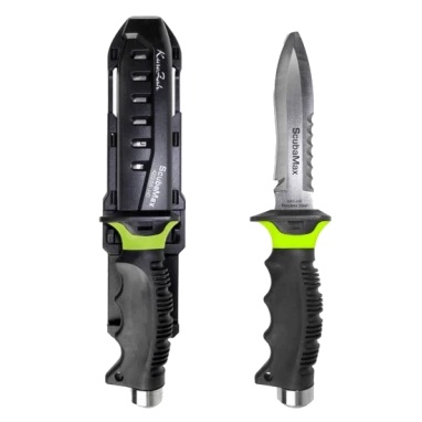 - Newly designed full-size blunt tip dive knife with stylish sheath and double push button locking system