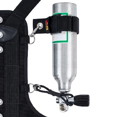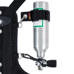 For divers who use argon gas for drysuit inflation or carry a small bottle of spare air, our Argon Bottle Mount carries one 6-cubic foot or one 13-cubic foot cylinder. Bottle mount attaches using a pair of stainless steel assembly screws (included) to the perimeter holes of metal backplates, or to the 1″ stainless steel D-rings on the perimeter of a Transpac harness. The Argon Bottle Mount can be attached to either side of the backplate or harness, behind the diver’s arm. A quick release buckle allows the bottle to be removed, if necessary, during a dive. Made in the USA.