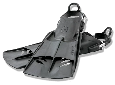 Increase your power to weight ratio with our new F2 fins. If you are a traveling diver, looking to reduce weight or just favor a lightweight fin, look no further. The patented F2 is designed to add blade surface on both the downstroke and upstroke to increase your efficiency with any type of kick. The F2 is injection molded using monoprene and uses a shorter blade design which packs easy and improves agility in tight areas. Standard with adjustable stainless steel spring straps.