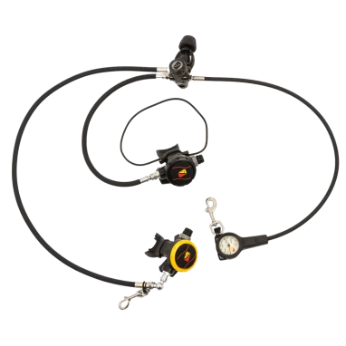 The FT Advanced Open Water Regulator Package draws from our technical roots, for a regulator setup that any diver can appreciate. The FT Advanced Open Water Regulator Package consists of our FT1 High Performance Fixed Turret First Stage, a matched set of XT2 Balanced Second Stages, and a Mini Tech 2″ SPG. Along with all of the main components, accessories such as clips and necklaces are included.