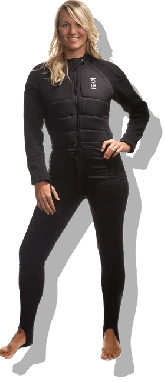 Handwarmer pockets (in response to popular demand) have been added to both men’s and women’s styles and the women’s suit features the “comfort zip” enabling the wearer to use the bathroom without removing the undersuit.