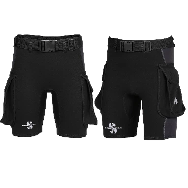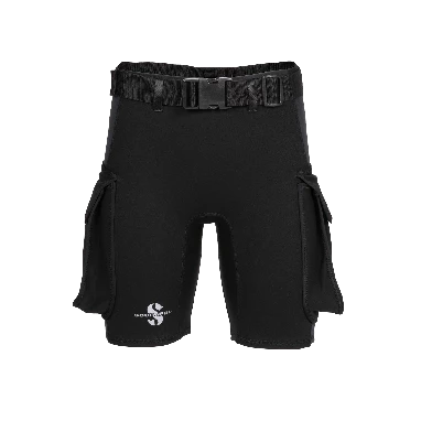 Comfortable and stretchy, Hybrid Cargo Shorts form-fit to your body like you were born wearing a pair. Made from a mix of quality 1mm neoprene and nylon, on the inside a micro-plush lining makes the shorts warm and cozy. This plush lining absorbs less water, increasing overall warmth, plus dries quickly. The updated design features a new adjustable waist belt that replaces the prior drawstring. The belt threads through a series of belt loops and includes an easy-to-use male/female squeeze buckle closure. A new anti-abrasion fabric on the seat panel enhances durability, and the two large cargo pockets are handy for carrying money, sunglasses or other accessories when enjoying a day on the beach or dive boat. Hybrid Cargo Shorts are designed to be worn either by themselves or over a dive suit.