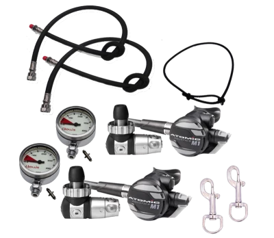 Our Atomic M1 Sidemount Regulator Package includes everything you need to hit the water in your sidemount equipment: