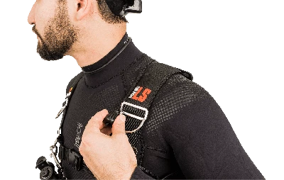 Deluxe style harness provides a customizable and comfortable fit for nearly any size diver. The harness can be easily replaced. The waistband is designed to sit lower on the diver’s hips, optimal for trimming out cylinders attached to the waist.