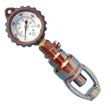 Pneumatic air pressure checker with push button bleed. Easy to use and very quick for checking alot of tanks.