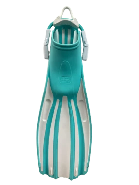 - Adjustable silicone heel strap on scuba fin provides 6 points of adjustment