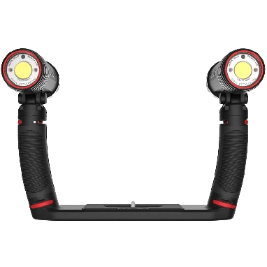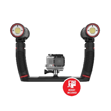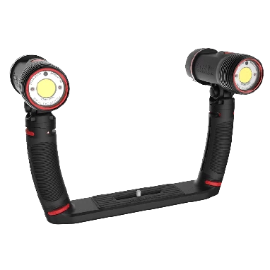 The Sea Dragon Duo 6000 underwater lighting set packs a powerful 6000 lumens using two Sea Dragon 3000 COB LED lights mounted on a Flex-Connect® Dual Tray. The ergonomic grips increase camera stability while the dual lights increase beam angles even further.