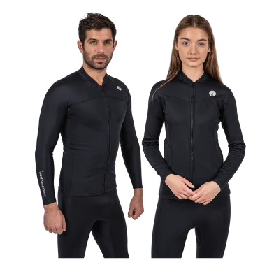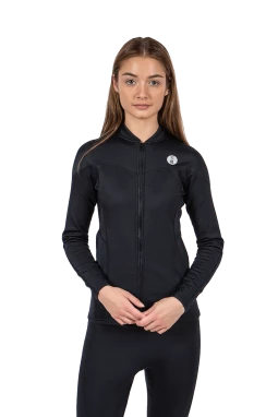 The convenience of the zip-thru jacket is that it is easy to don and quick to remove. The breathable fabric ensures that it is comfortable whilst preparing to dive and the design allows great freedom of movement along with the ability to unzip a little to keep cool before the dive. Pair this with the leggings to give full length neutrally buoyant thermal protection that dries quickly and is machine washable; always ready for next getting in the water.