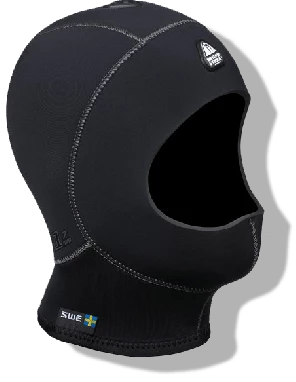 The body reacts to cold and heat by adjusting the blood stream to different parts of the body, like hands, fingers and feet. But the body can not adjust the blood flow to your head. This is to ensure brain function at all times. The colder it gets, the more heat you lose from the head by radiation, or by conduction in the water. You stay warmer with an effective hood.