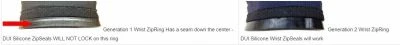 SILICONE ZIP SEALS WILL NOT FIT DUI DRYSUITS IF THEY ARE GEN 1 WRIST ZIP RINGS. (please see photo to confirm which generation you have)